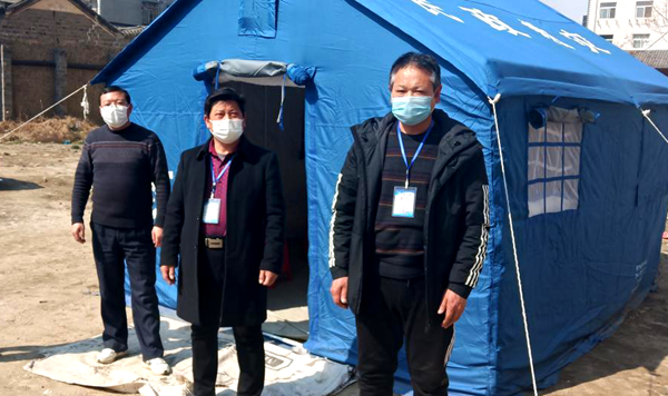 新冠病毒疫情发生后,王广军老师听说学校要组织志愿者队伍,他赶紧报了名。每天早早来到学校,在校园内外探查巡逻,忙着打扫消毒,保护校园的净洁安全。新年前几天,他和天明小学的几个同事参加了城关镇中西关社区宣传队,戴着口罩,冒着寒风喊话,遇到人都热心劝返,宣传政策。随着疫情的加重,各个社区、街道都要求封锁。王老师和天明小学的许波、郭德明、孟祖国、刘伟等同事一起负责下西关汽配厂小区的防疫事务。他们每天都十分忙碌:细心为小区消毒,接听电话了解居民的购物需求,在小本子上一一记录清楚,然后赶快奔向超市购买回来,整理分发。每天都深入楼层,挨家挨户地敲门,细致访问身体状况,量准体温,作好登记。其余时间就站在出入关口严格把守。小区由武汉返乡9人,亲密接触3人,共12人,按照防空指挥部要求,每天必须两次量体温。并及时向社区汇报,其他人员健康情况必须向社区一天一汇报。小区里有两位老人,其中一位年老纪大,体弱多病,不能断药。为确保身体无碍,生活无忧,王老师和同事们就每天两次上门过问。刚开始的时候,还没有帐篷,下雨了就都站在雨中,守护着人民的安全。有时候太忙了就干脆不回家吃饭,吃点方便面充饥。有一天快中午的时候,王老师接到电话,他马上去超市买来粮食和蔬菜送到楼下,一点多才换班回家吃午饭。