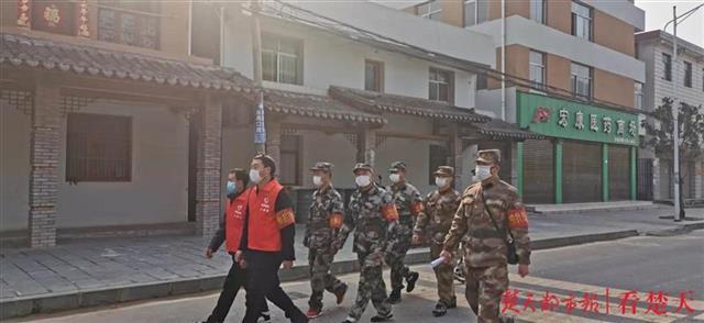 土城镇第一时间组织退役军人志愿者成立“抗疫”小分队,每天活动在土城镇的各个村落。疫情当前,他们宣传知识,配合管控,帮助群众居家遇到的各种问题。在土城镇辖区各个村庄、扶贫小区、防控点到处都有退役军人志愿者的身影。