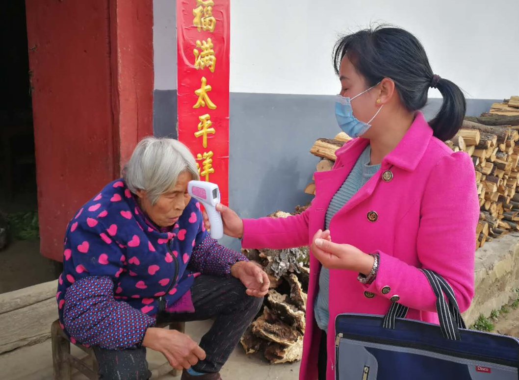 腊月28,本是大多数人准备着过年的时候,疫情袭来。一想到全村群众的身体健康,她便坐不住了,她放弃假期,和村上的干部一起开始夜以继日地全面排查村内返乡人员,特别是武汉返乡人员情况,共排查返乡人员489人,其中武汉返乡49人,并建立微信群,时刻了解武汉返乡人员动态情况。她的身影遍布村内的每一个角落,经常看到她戴上口罩、拿着体温仪独自前往武汉返乡人员家中为他们测量体温。