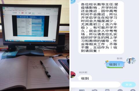 为了打赢教育系统疫情防控阻击战,各个学校教务处和校领导在中心学校的安排下每天在网上巡课、考勤,督促同学们上课、听课情况,并检查学生作业的完成情况。课后教师们分时段、有计划地在网上平台发布作业、批改作业,及时补充学习资料,第一时间为学生答疑解惑、排忧解困。同时,还根据学生线上线下反馈出的问题及时调整教学计划。