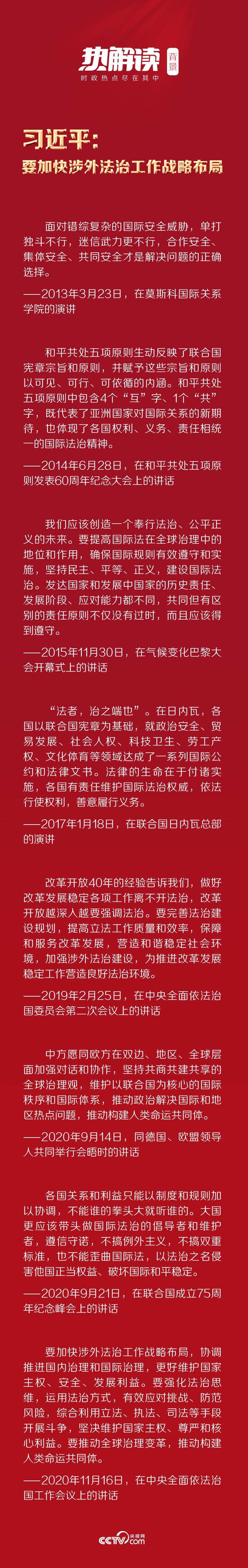 《热解读》注意到,早在2019年2月25日,习近平总书记主持召开中央全面依法治国委员会第二次会议时,就已明确要求加强涉外法治建设,为推进改革发展稳定工作营造良好法治环境。