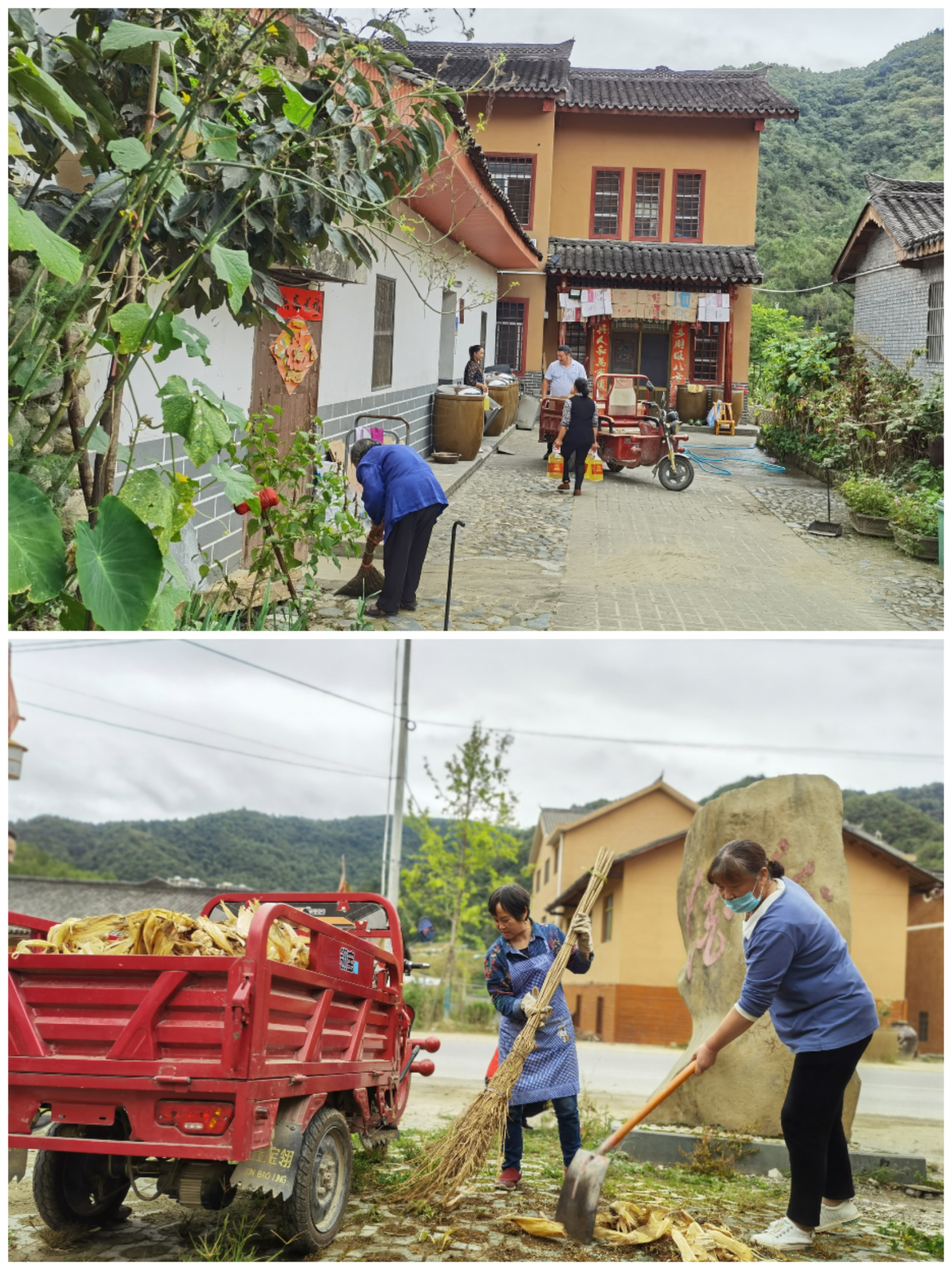 受志愿服务队的感染,村民也纷纷拿起扫把和锄头,打扫庭院,清理杂物,处理垃圾,错落有致的小院,显得更加干净整洁。