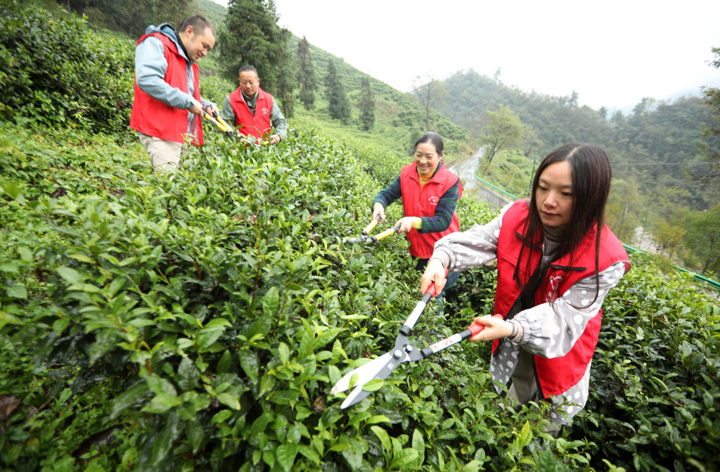 (此图为该镇东沟村群众对幼龄茶园进行管护)