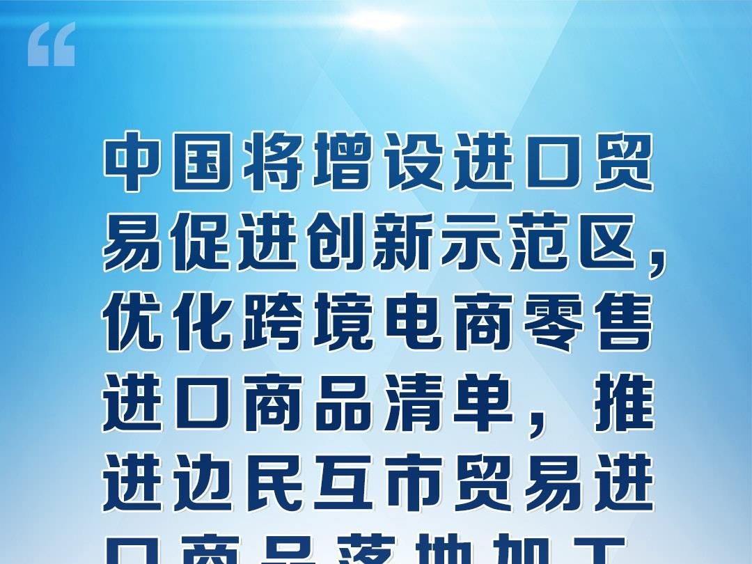 当天,习近平总书记还宣布了一组好消息,不久的将来就可能走进你的生活。比如,中国将有序扩大电信、医疗等服务业领域开放。中国将加快建设国际消费中心城市。中国将增设进口贸易促进创新示范区,优化跨境电商零售进口商品清单,推进边民互市贸易进口商品落地加工,增加自周边国家进口。