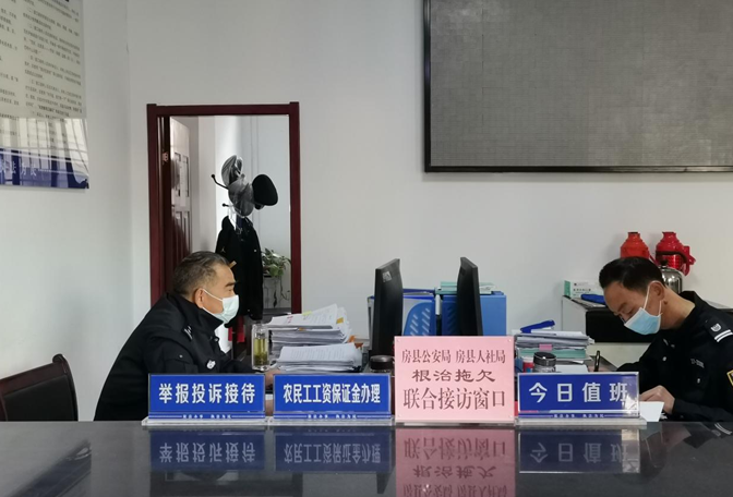 房县新闻网讯 通讯员 陈汉堤 瞿饬 报道:自11月5日以来,根治欠薪“百日攻坚”专项行动在房县全面开展,为保障“治欠保支”工作顺利进行,让广大农民工朋友拿到钱,过好年,房县人社局联合房县公安局实施部门联合执法,并在房县劳动保障举报投诉大厅设置根治拖欠联合接访窗口。