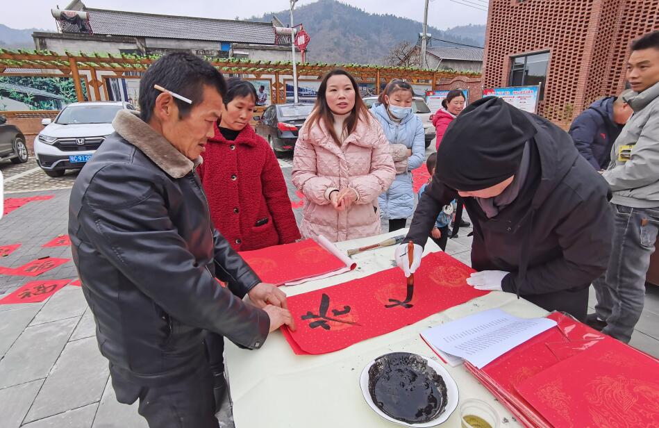 房县新闻网讯 通讯员 徐江垚 报道:“无联不成春,有联春更浓”。1月6日,东风汽车文化节文化惠民送春联活动走进房县陈家铺村,为村民写春联、送祝福。