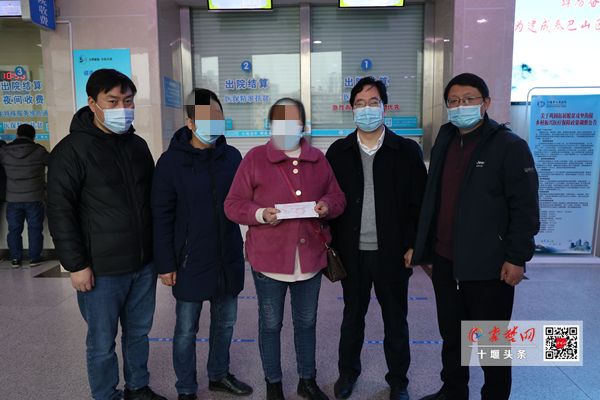 命保住了,但接下来的治疗费用怎么办?吴先生家经济条件并不宽裕,夫妻二人在家靠务农为生,突如其来的病魔,使原本拮据的家庭陷入困境。十堰市人民医院副院长王家宁教授在得知这一情况后,立即在十堰人医房县同乡会中发动筹款。人医房县老乡们纷纷解囊相助,短短一天内,就筹集到善款5700元。1月22日,王家宁教授带领十堰人医房县同乡会会长汪林涛、联络员李德伟,一起将这笔善款及时送到了江女士手中,为他们一家缓解了燃眉之急。目前,患者正在接受进一步治疗。