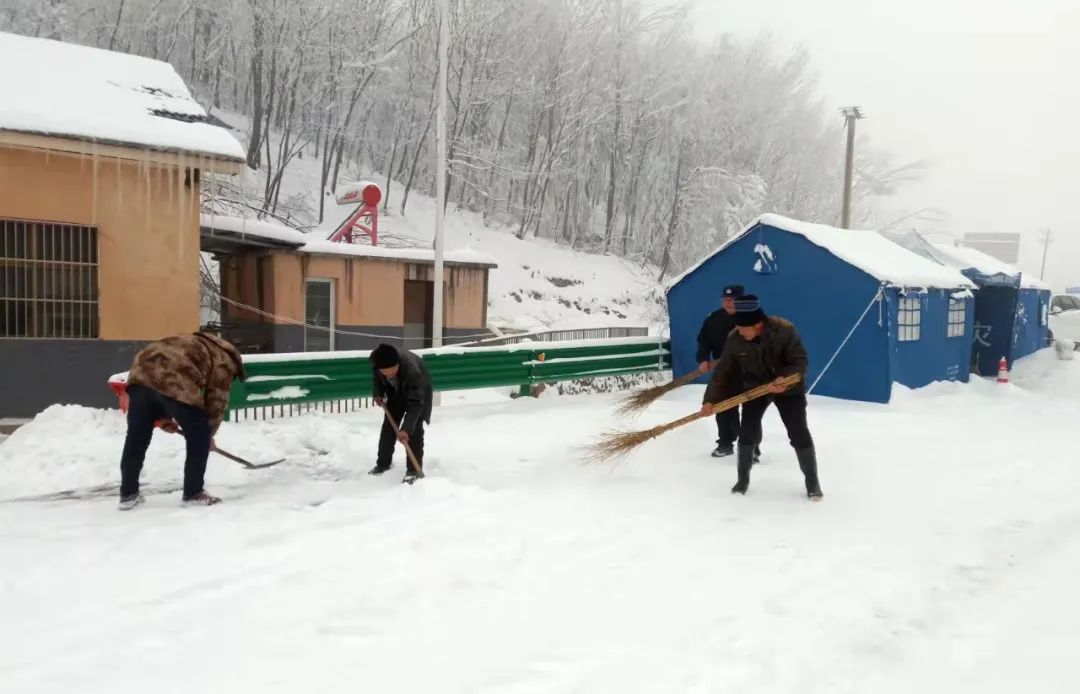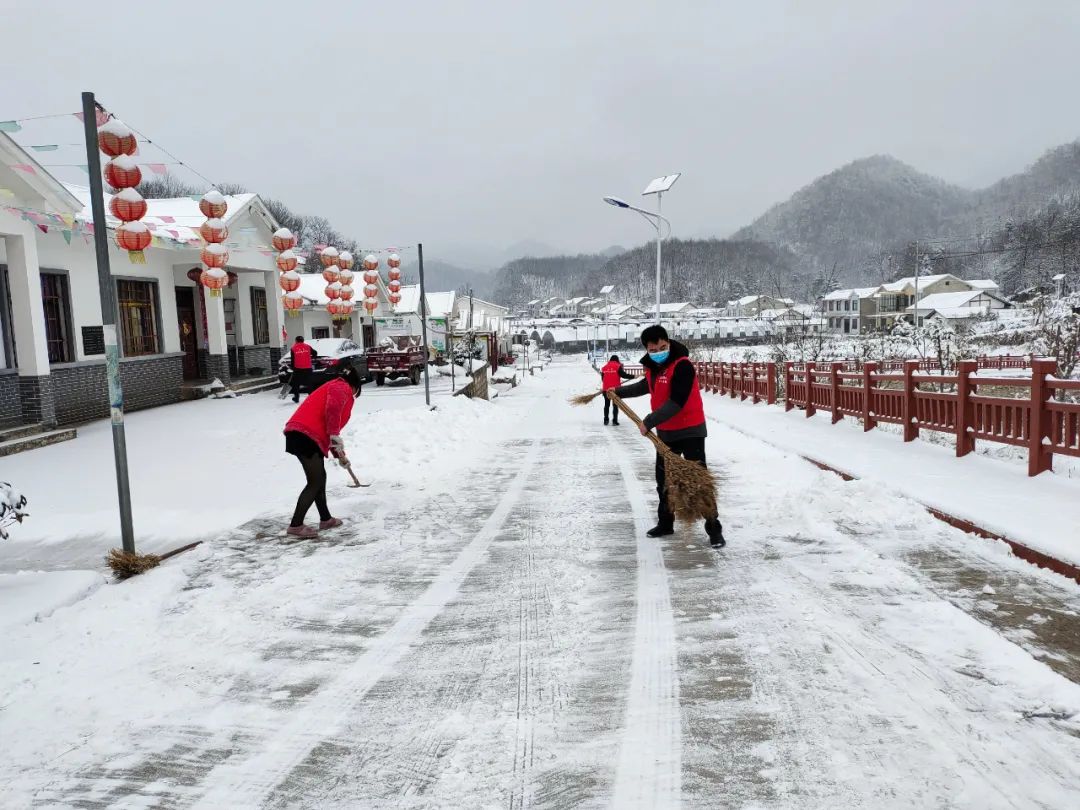 沙河乡机关志愿服务队、供电所党员服务队冒着大雪开展道路铲冰除雪、保供电、优服务活动。