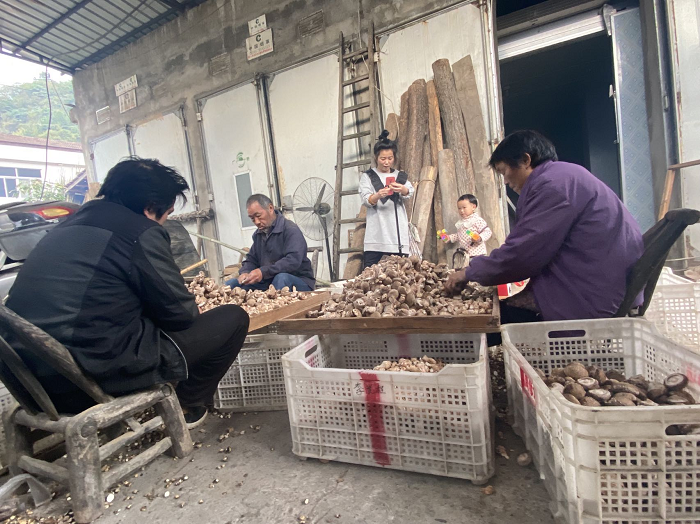 把在家村民“养”在食用菌大棚里。通过发展食用菌产业,村民拿租金、分股金、挣薪金、得奖金增加收入,同时还有部分在家村民在村集体和企业的带动下,自己发展,卖香菇也取得了可观的收入。鹰嘴石村的老学校小区和油坊坪小区前面的食用菌产业园区,建有53个大棚。产业园区的建设,使在家带娃的村民王艳丽,成为了上班族,实现了带娃赚钱两不误。王艳丽从怀孕到现年女儿3岁,一直在门前的食用菌园区上班,种菇、摘菇、剪菇、晒菇、卖菇一系列流程全都可以挣钱。平时大棚里有活的时候,她就带着孩子在大棚里干活,赚薪金。没活干的时候,王艳丽也不闲着,当“村播”,在抖音上卖香菇。“我现在的粉丝都有十几万了,开始玩直播是打发时间,现在直播是我赚钱的门路,每个月可以赚3000多块钱,在家里孩子和老人也照顾了。香菇干的湿的都有人买,不仅我们自己家的香菇卖出去了,我还帮邻居卖了一些。都是党的政策好,建这些食用菌大棚养活了我们这个小区在家的人。”在进村入户,户户走到工作中,正在直播的王艳丽指着自己抖音上的粉丝数,骄傲的告诉驻村干部。
