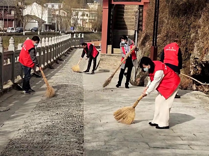 房县新闻网讯 通讯员 谢鸽 报道:3月1日上午,在军店镇,随处可见身穿红色马甲的志愿者,或手拿扫把、铲子清扫路面,或手提垃圾袋清理电线杆、墙体上的小广告,或向行人分发《致居民的一封信》,动员群众开展清洁行动。这群“红马甲”有的是军店镇机关干部,有的是镇直单位职工,还有的是军店镇新时代文明实践站的志愿者。