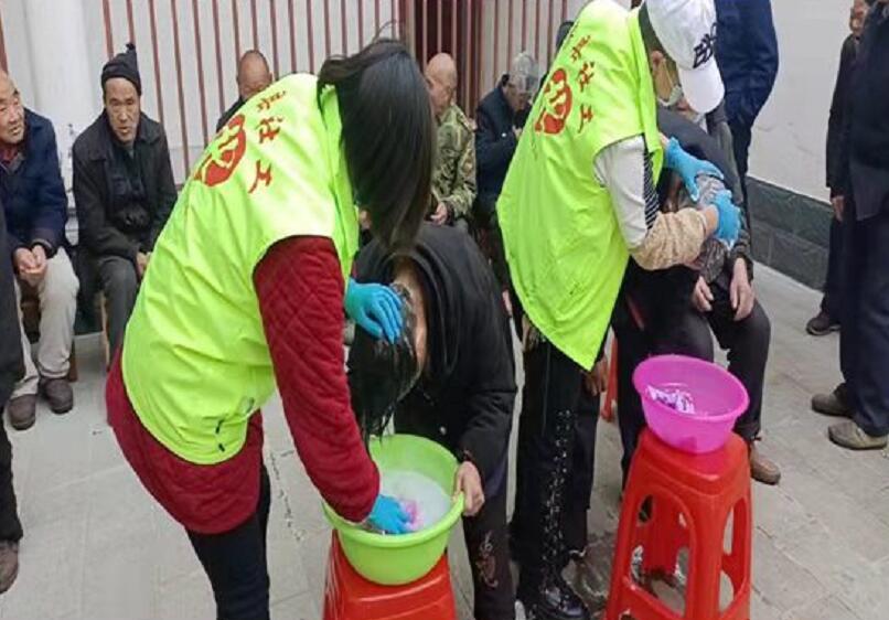 志愿者们有的操起剪刀,熟练地为老人搬来凳子、打好热水、拧来洗发水,动作麻利的为老人洗头、擦拭、吹干,不时地还会询问老人力度重不重,洗的舒服不舒服。在场的每位老人脸上都洋溢着幸福的笑容。活动现场,志愿者、社工们还贴心的为老人们整理被褥、刮胡子、修理物品等,一上午过去了,化龙堰镇福利院28位老人都享受到了镇新时代文明志愿服务队和爱心社工志愿服务队的贴心服务和细心照顾。