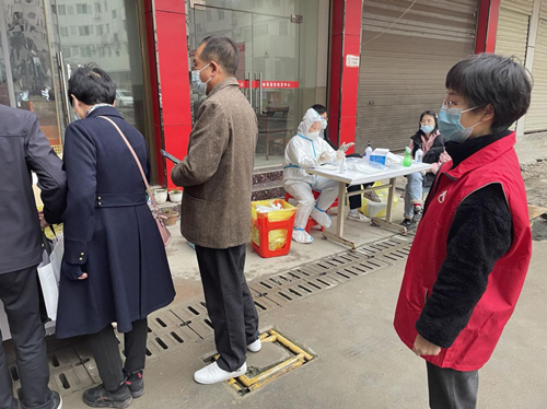 房县新闻网讯:“紧急通知:请小区的居民,带好身份证,做好防护措施,到时代花园做核酸......”上午8点,县黄酒中心全体职工来到包联小区,迅速搭建好宣传服务台,登门入户通知小区居民开展全民核酸。
