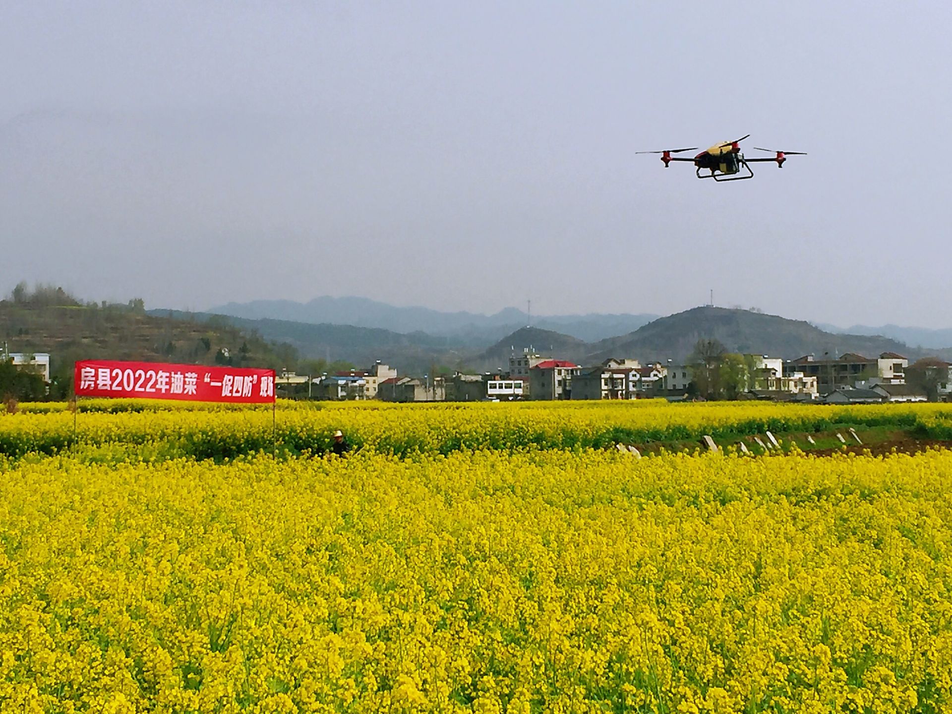 房县新闻网讯 记者 宋钱 通讯员 方运生 报道:随着气温逐步转暖,房县军店镇的万亩油菜示范区已经进入盛花期。18号,我县农技专家深入田间地头,指导农户开展油菜田间管理,组织专业合作社机防队,利用无人机追肥喷药,促进油菜正常生长发育。
