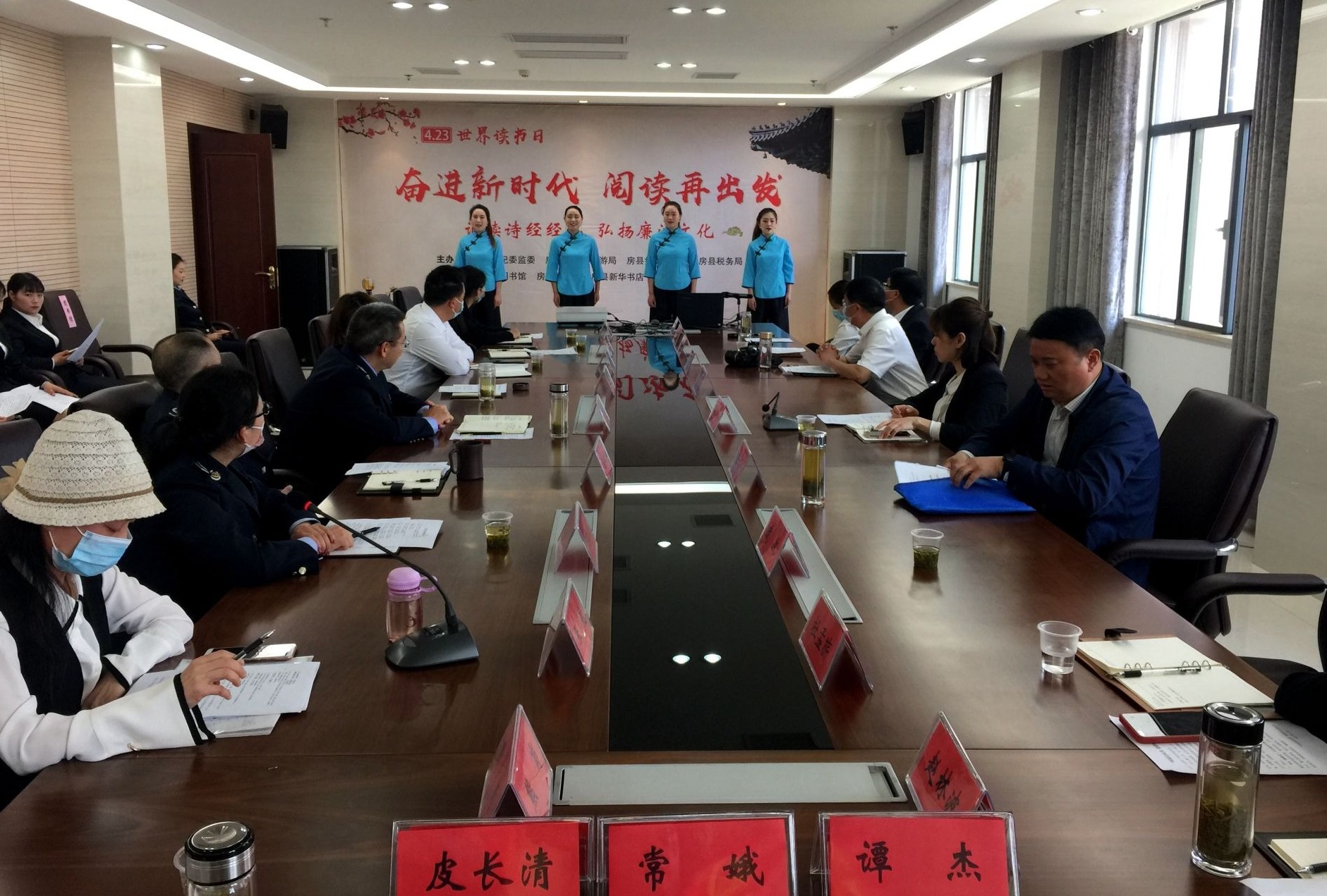 房县新闻网讯 记者 宋钱 通讯员 王丽君 报道:在第27个世界读书日到来之际,为更好地推进全民阅读,让诗经文化进企业、进机关,4月22日上午,房县纪委监委、文化和旅游局、妇女联合会、税务局、联合组织开展了以“奋进新征程、阅读再出发、诵读诗经经典、弘扬廉洁文化”为主题的读书活动。