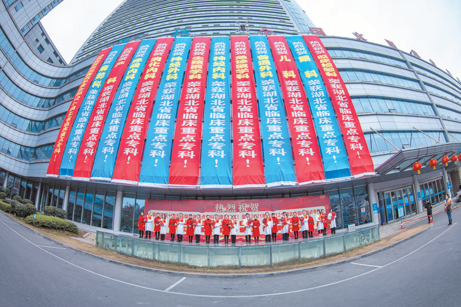 中国胸痛中心、心衰中心、房颤中心、心脏康复中心、综合卒中中心、癫痫中心、急性上消化道出血救治中心等7个国字号资质相继落户;8个市级质控中心,45个MDT团队,医疗技术实力和健康服务水平领跑鄂西北。 1994年1月,医院成功开展鄂西北首例心脏直视手术,心血管病诊疗技术迈上新台阶。2017年1月,在全省市州医院中首家独立开展分站式心脏杂交手术。2021年,医院创新体制机制,建设创伤、重症医学、康复医学三大集合中心,进一步巩固了区域急危重症救治中心地位。 2020年,面对突如其来的新冠肺炎疫情,医院主动请战,实现了发热筛查零漏诊、确诊重症患者零死亡、医务人员零感染,在全市三甲医院中独家获评“无疫医院”的“三零一”战绩。