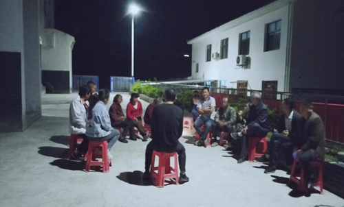 在二荒村,包联干部深入农户家中了解情况,当前正值农忙时节,有很多群众都在地里忙农活,大家就利用晚上的时间与驻村工作队和村两委干部一起召开户院会,结合乡村振兴、信访矛盾、安全隐患排查等问题,与群众拉家常,谈心,了解他们在产业发展和日常生活等方面存在的困难,村民任典程咨询慢病领药的政策,驻村工作队的队员当场给予讲解,村民许大富询问肉兔代养的相关问题,村两委迅速核实情况,并于次日上午解决到位。