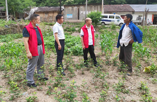 在范家垭村,党员干部在搬迁小区打扫环境卫生,并深入到每一户包联群众家中、深入到田间地头,与群众面对面沟通,心贴心交流,与群众谈产业、谈庄稼收成、谈惠农政策,听取他们困难诉求、意见建议。村民周玉春想了解关于养鸡产业的优惠政策,刘忠国右脚行动不便询问能否办理残疾证,包联干部第一时间向工作队反映,联系相关部门了解政策,并对两位村民做了详细的解释,下一步将进行持续跟踪关注。在脱贫户杨连山家中,大家一起来到他家的药材地里,查看种植的一亩多贡术的生长情况,询问了病虫害防治的具体措施,老杨对种植药材增加收入充满了信心。