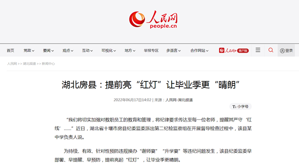 人民网:房县提前亮“红灯”让毕业季更“晴朗”