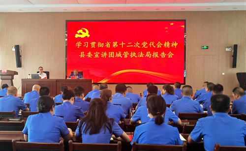 房县新闻网讯 通讯员 余鲲 徐慰 报道:7月14日下午,房县城管执法局召开召开学习贯彻湖北省第十二次党代会精神宣讲报告会,邀请房县县委宣讲团成员、县委党校常务副校长赵礼江作专题宣讲。执法局班子成员、机关股室负责人、二级单位中层以上管理人员参会。