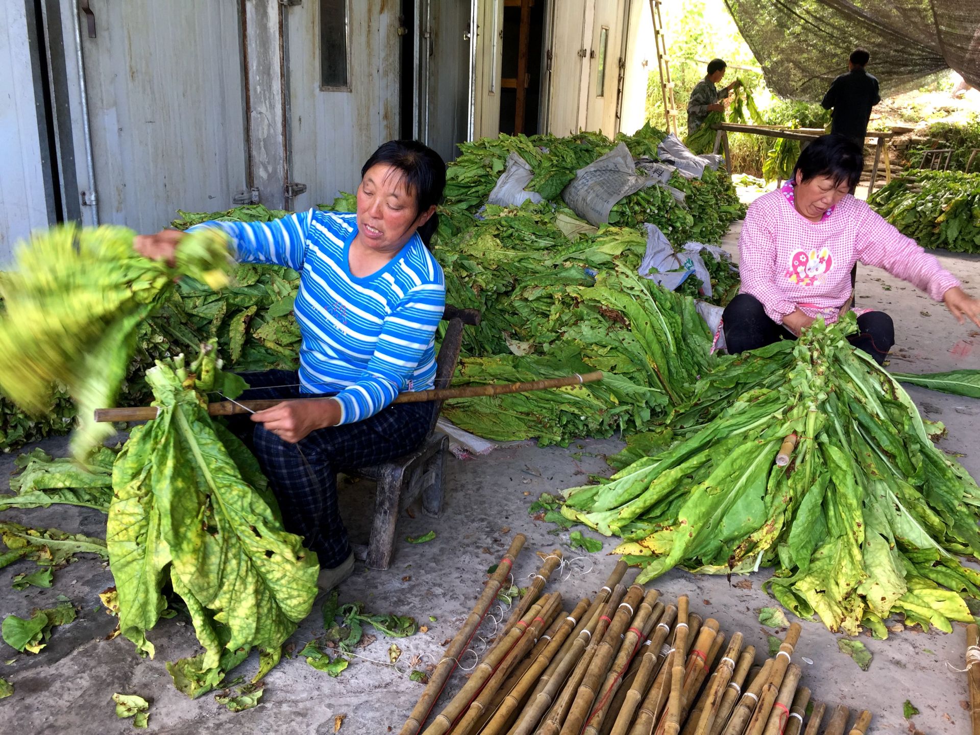 近日,记者在青峰镇东西店村烤烟种植地里看到,烤烟长势喜人,有的烟农正在烤烟地里采摘成熟的烟叶,有的正在烤房内将打包回来的烟叶进行整理、分类编烟。