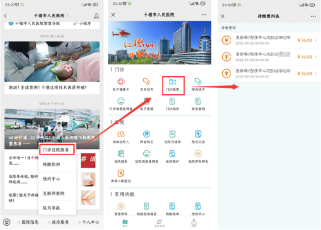 参保居民只需打开十堰市人民医院官方公众号,随时可挂号预约好就诊时间,提前10分钟进入医院,无需排队取号,直接到就诊科室就诊。医生开完处方以后,患者再次进入医院官方公众号,可直接在手机上进行医保结算,结算完成后直接去完成剩下的诊疗即可。无需排队,高效快捷。