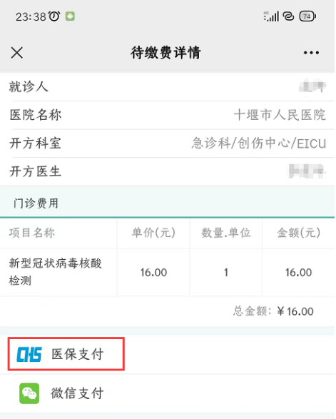 2.点击链接查看费用详情,选择医保支付方式: