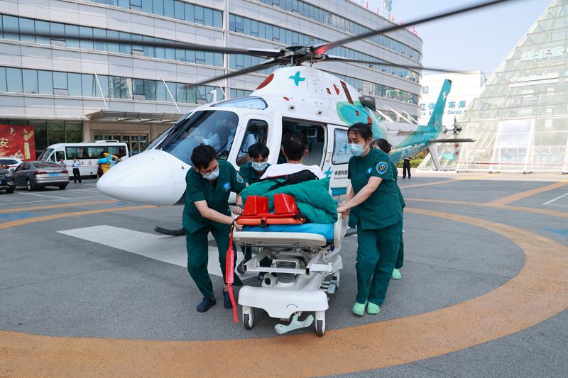 了解患者情况后,十堰人医航空救援科主任郭文萍紧急启动直升机救援。当日11时40分,直升机从健康广场起飞;12时18分,直升机抵达竹山,随机医护人员紧急查看患者病情,7分钟后将患者转运至直升机上,直升机从当地起飞;12时51分,直升机到达十堰人医。原本陆地转运患者单趟需要2个多小时,十堰人医直升机仅用时26分钟,且有效避免了路况不好、假期堵车等各种因素可能带来的不利影响。