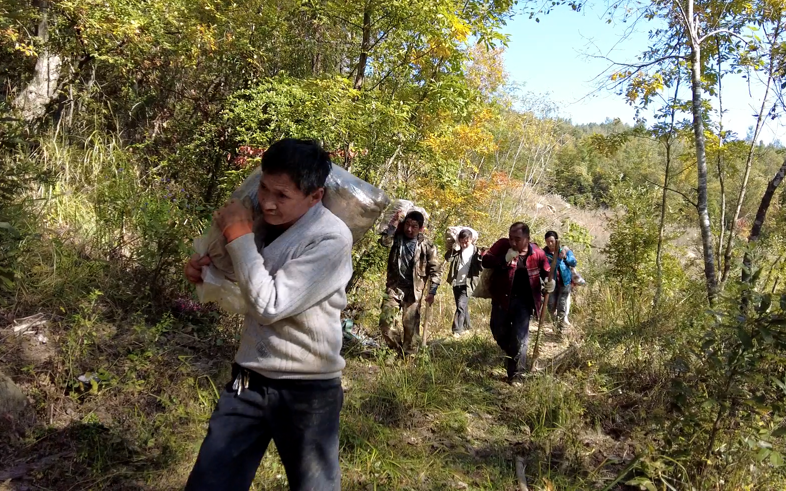 在天麻种植林区,采挖天麻的村民刨土、脱泥、装袋、搬运,身旁的麻袋装满一个个硕大饱满的天麻,脸上洋溢着丰收的喜悦。