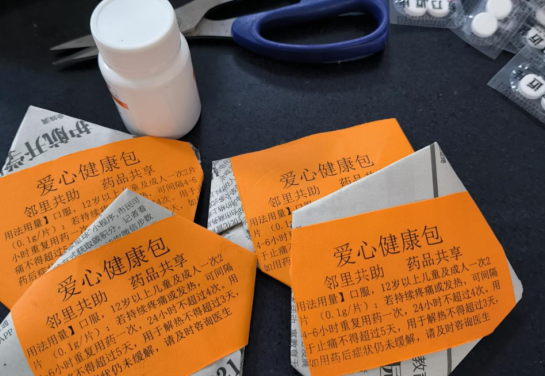 “婆婆,这个布洛芬在疼痛的时候一次吃两颗,吃完药如果没有效果,您及时联系我们。”驻村工作队耐心地向特殊群体解释药品用量用法及注意事项,在爱心包封面注明文字说明,并留下村医联系方式和工作队联系方式。
