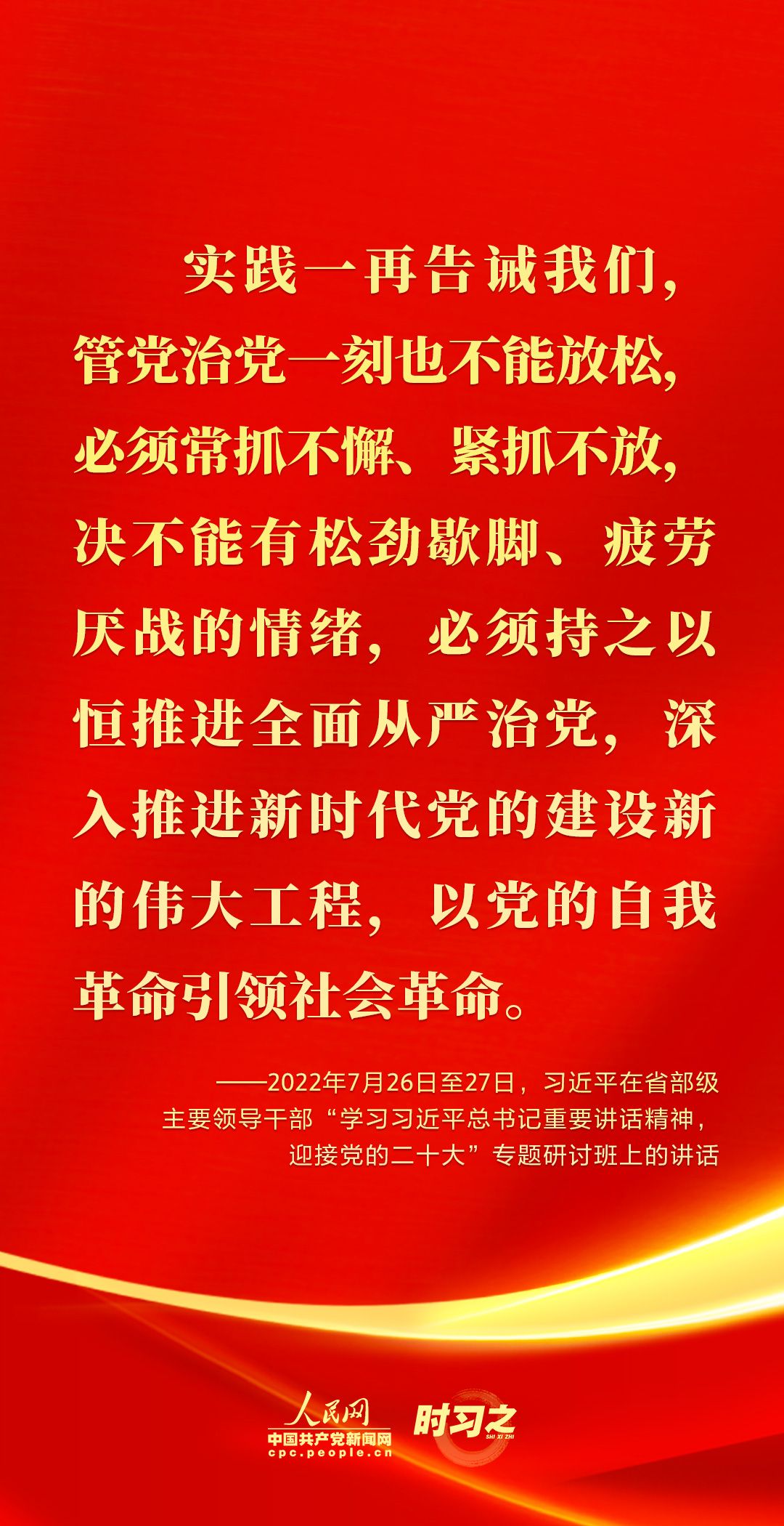 编者按 治国必先治党,治党务必从严。2022年,习近平总书记在多个场合围绕全面从严治党,阐明思想、作出指示、提出要求。这激励着广大党员干部继续发扬历史主动精神,推动全面从严治党乘势而上、再接再厉;激励着广大党员不忘初心、牢记使命,着力保持平稳健康的经济环境、国泰民安的社会环境、风清气正的政治环境,确保党和国家事业行稳致远。