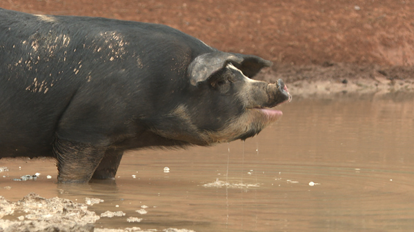 徐进通过多方考察验证,最终选择了巴克夏猪作为散养品种。这个品种猪头较重,体型高大修长,骨架粗大结实,瘦肉率极高,产仔也高于其他黑猪,具有非常高的食用价值,市场前景广阔。