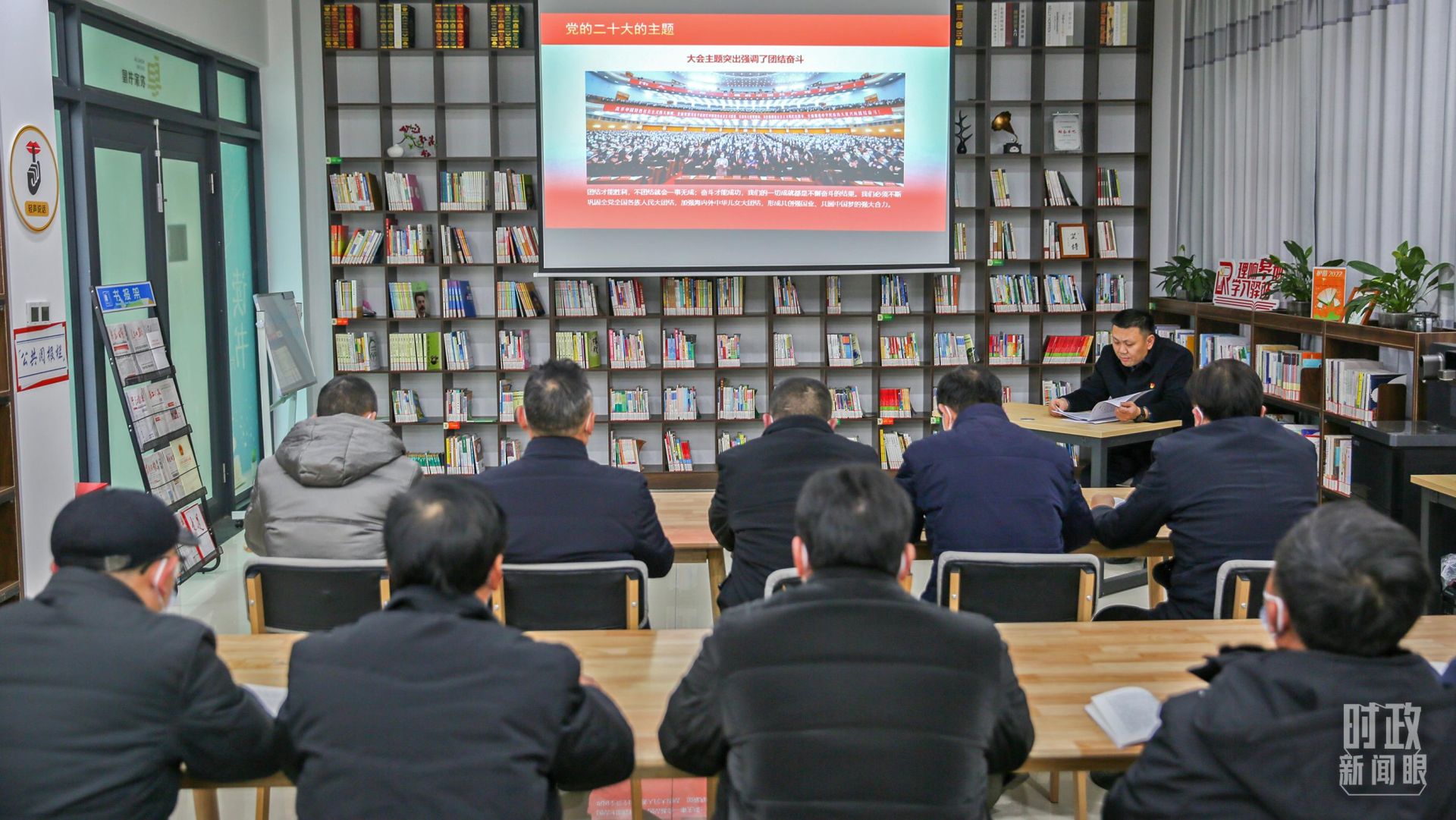 △2023年1月6日,江苏南通的一座农家书屋内,正在举办共读党的二十大相关书籍活动。(图/视觉中国)