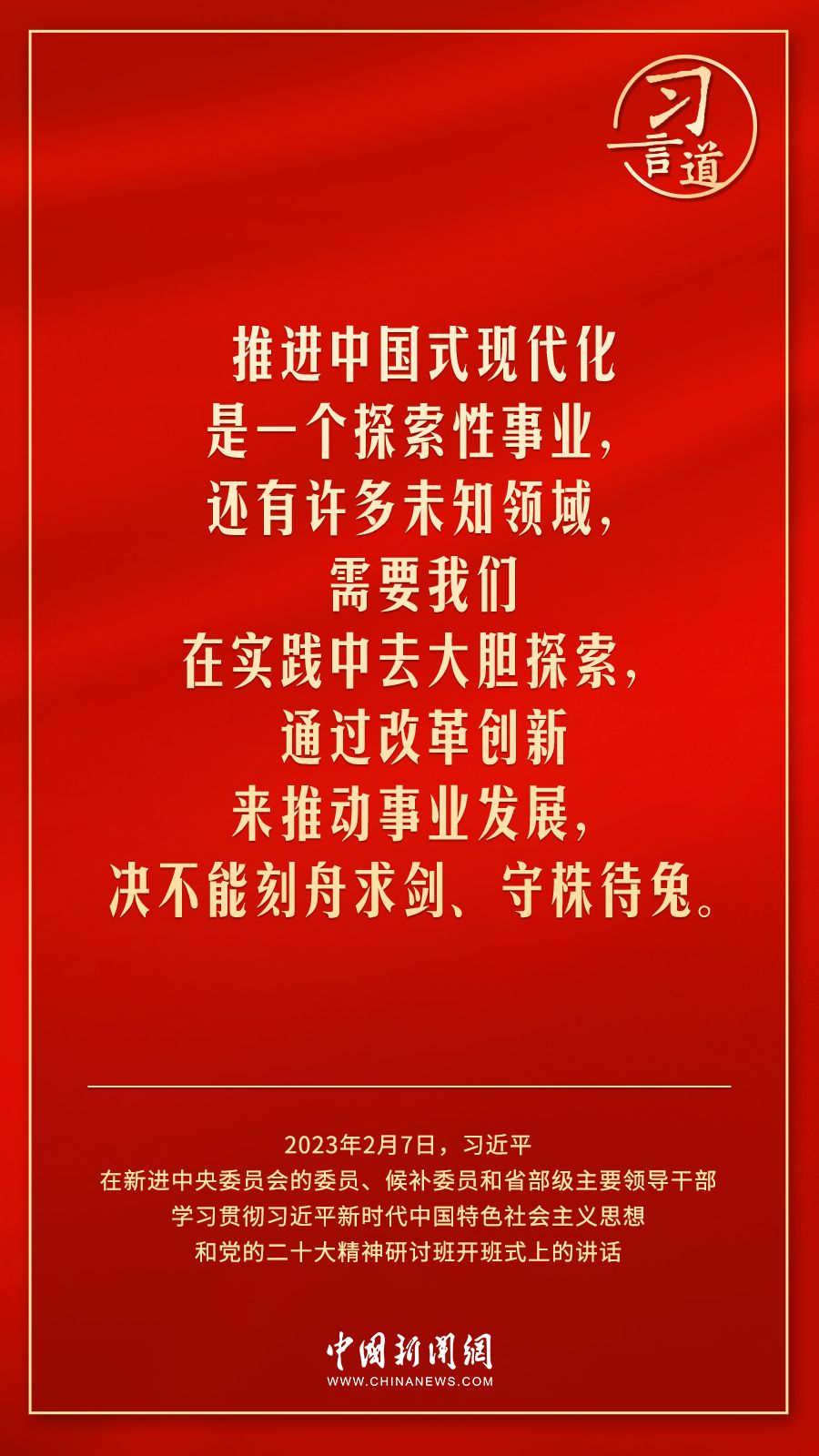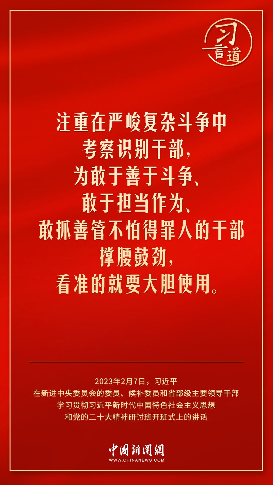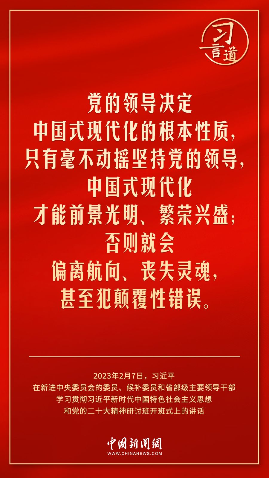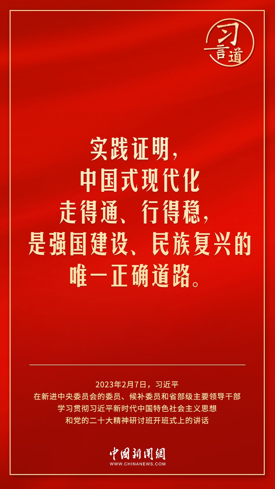 新进中央委员会的委员、候补委员和省部级主要领导干部学习贯彻习近平新时代中国特色社会主义思想和党的二十大精神研讨班2月7日上午在中央党校(国家行政学院)开班。中共中央总书记、国家主席、中央军委主席习近平在开班式上发表重要讲话,他强调——