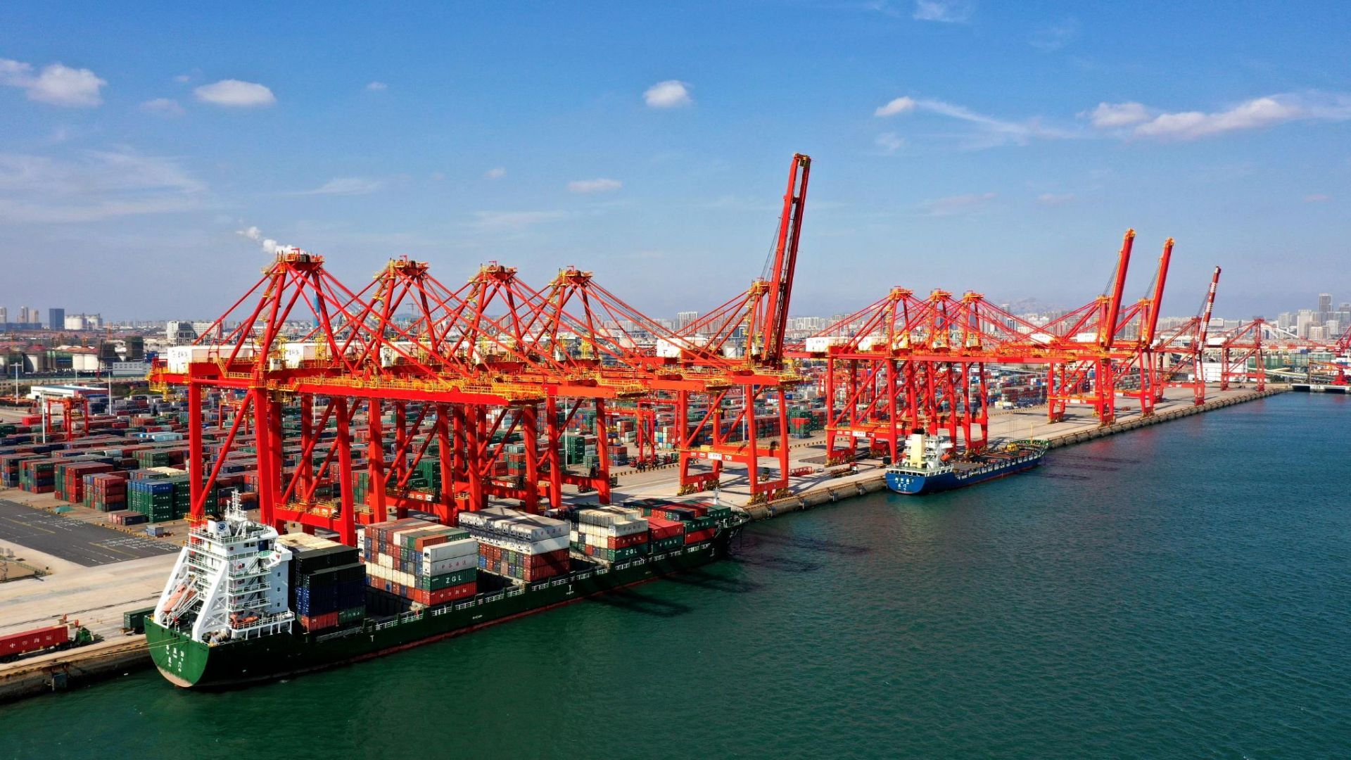 △山东日照港顺岸开放式全自动化集装箱码头。2022年,日照港年吞吐量突破5亿吨,同比增长6%,其中对“一带一路”沿线国家进出口增长超50%。