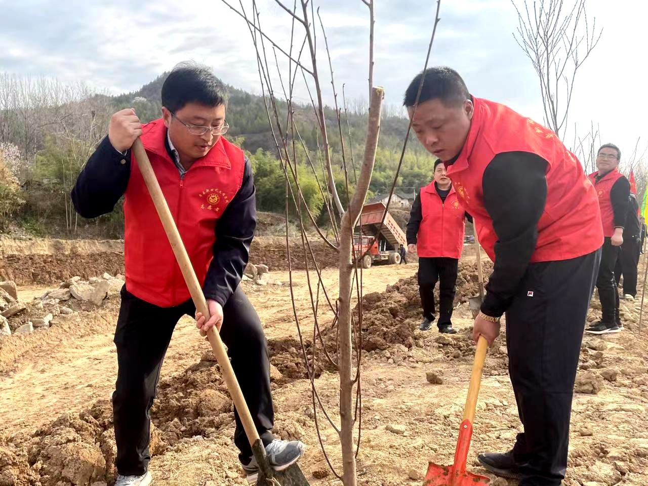 活动现场,大家热情高涨,认真听取镇林业站工作人员的有序指挥和指导,“栽树要注意不要损坏根部,浇水要一次性浇透,尽可能栽得深一些”,大家拧起铁锹、移下幼苗、一铲一铲将土填满坑,白花花的水顺着水桶流入土坑,在大家的分工协作、默契配合下,一颗颗树苗“站”了起来,迎风而立,向阳生长。