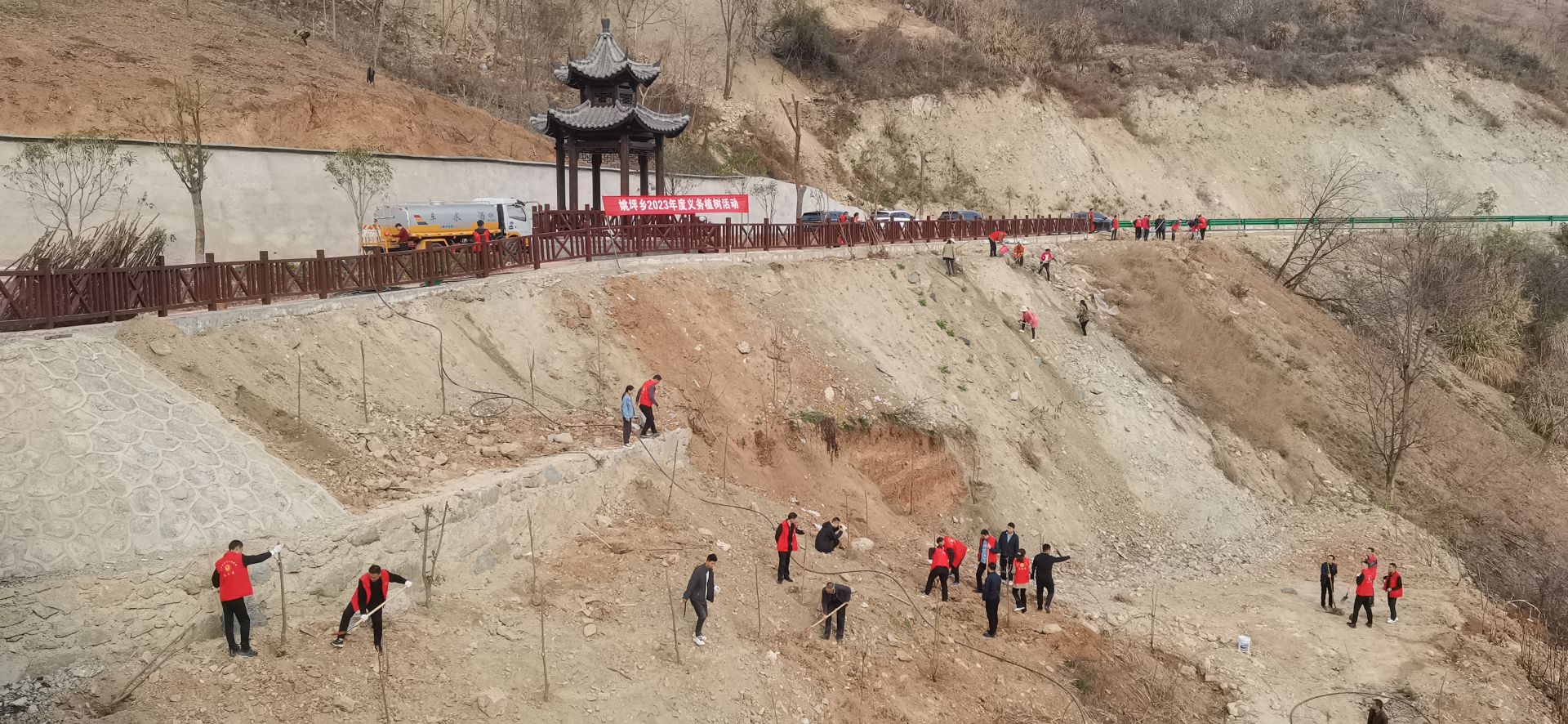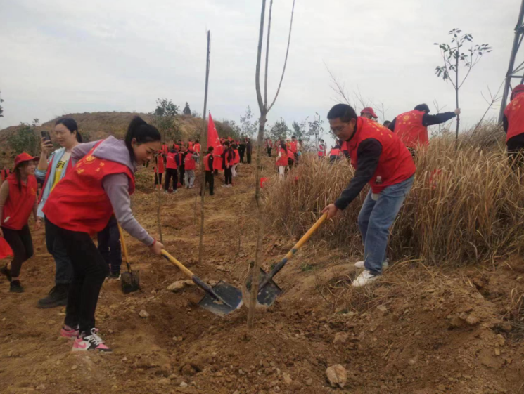 在各位志愿者的辛勤劳动下,原本单调的山坡上很快点缀上了一抹抹新绿,大家纷纷拍照留念,共同见证这充满生机的瞬间。活动结束时,大家在山坡下回望,看着一颗颗亲手种下的树苗,大家衷心的希望来年这里能够成为生机盎然的树林。本次义务植树活动提升了党员干部们“植树、护绿、爱绿”的生态文明意识,号召全镇共促绿化事业发展,共建美丽宜居乡村。