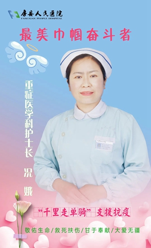 况 娥,女,副主任护师 从事护理工作15年,历任外科护士、护师、主管护师,现任房县人民医院ICU护士长。担任湖北支援新疆医疗队护理组长,兼任十堰市医疗分队副队长。该同志多次被单位评为“先进工作者”、“优秀管理干部”、“优秀护理标兵”。2022年被授予县“卫健系统先进个人”,中共十堰市市委给予记功奖励。中共海南省委员会、中共乌鲁木齐市委员会、新疆维吾尔自治区人民医院分别颁发抗疫荣誉证书。