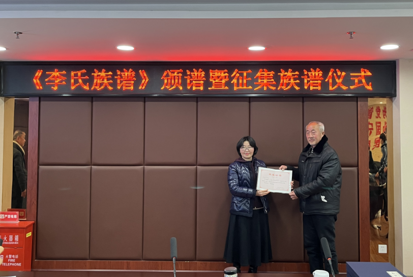 房县档案馆馆长李承华代表档案馆接受了《李氏族谱》的捐赠并颁发捐赠证书。她表示,族谱是弘扬家风家训,延续血脉亲情的重要载体,编修家谱是凝聚家族合力,促进家族兴旺和谐的重要方式。房县档案馆征集族谱既是重视传统文化的保护与开发,加强对族谱、家谱的归集,又是档案史志部门能力作风建设在行动的具体体现。要充分认识族谱的历史价值和现实作用,为了更好地传承历史、资政育人,县档案馆将继续加大征集族谱档案范围,拟建设族谱专门档案,让族谱找到“最好的归宿”。