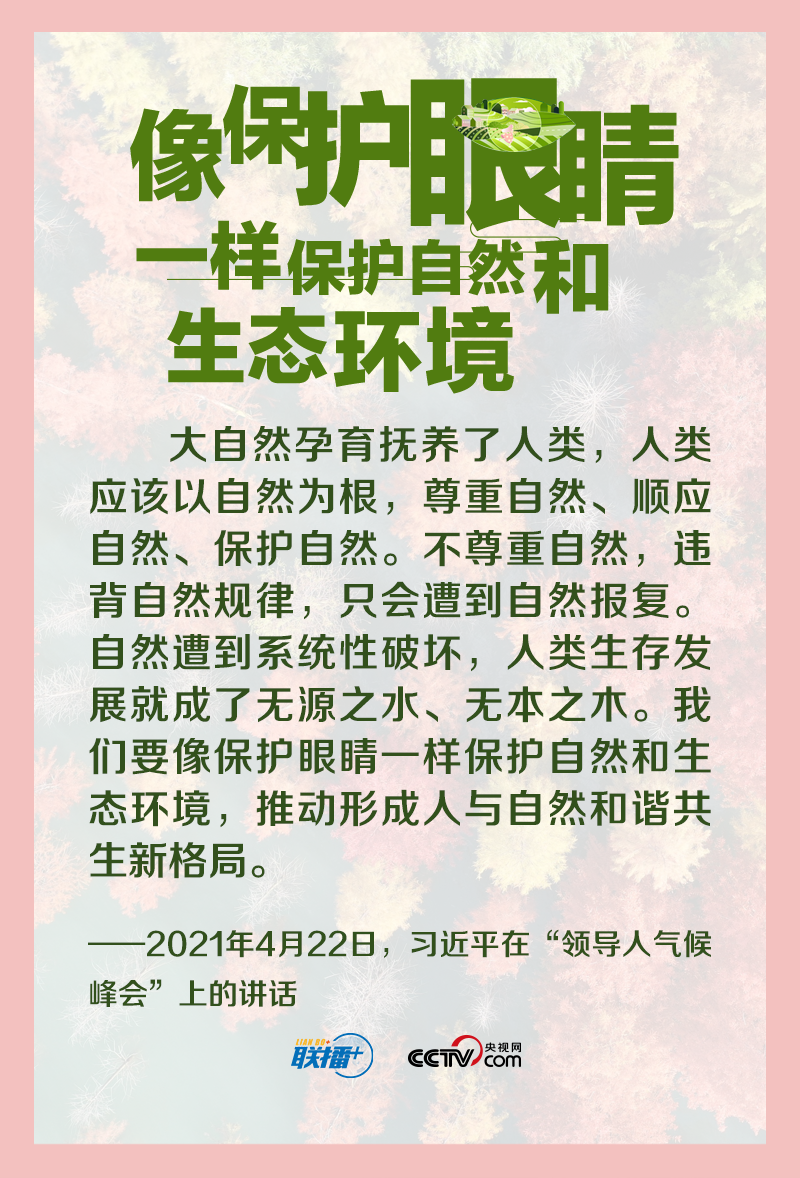 近年来,习近平主席在不同场合多次呼吁构建人与自然和谐共生的地球家园。他说:“这是对我们自己负责,也是对世界负责。”