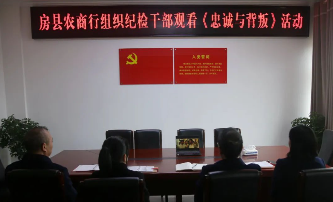 观看一次警示教育片。房县农商银行纪委组织专职纪检干部集中观看电影《忠诚与背叛》,结合案例,深刻领会,用身边事教育身边人。通过深学细悟,引导纪检干部牢记使命,严格自律,守牢底线,不踩红线。