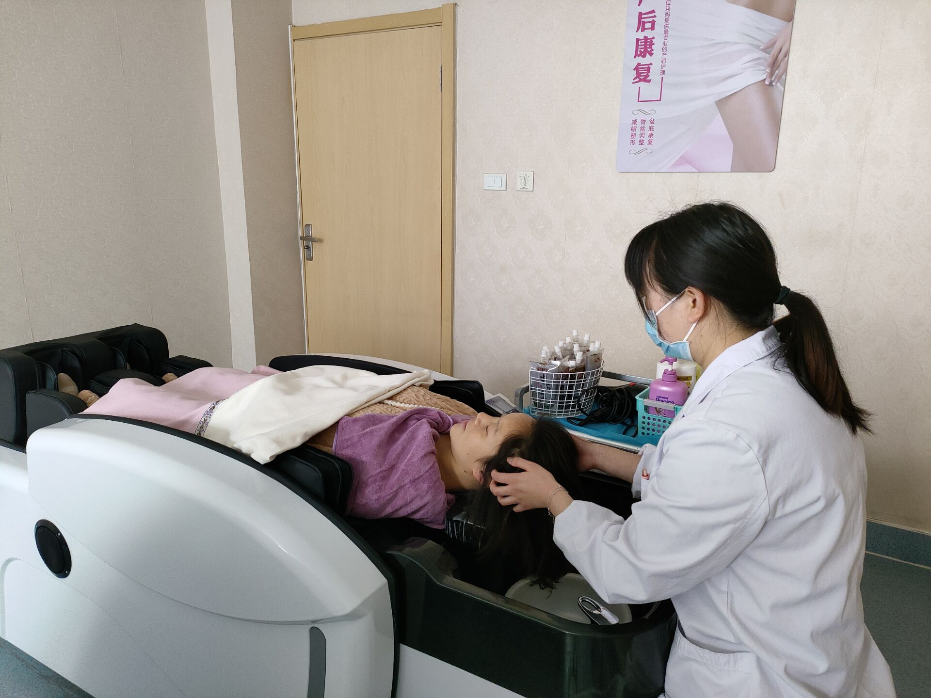 据悉,产后妈妈在心理压力激增的情况下,肾上腺会分泌“压力荷尔蒙”的皮质醇,刺激头发加速完成生长周期,从而引起大量脱发、失眠、甚至引起偏头痛,成为了产后妈妈们的“心结”。头疗是通过中医手法、中药运用及穴位按摩,以中药外洗与头部穴位按摩相结合,帮助产妇及时祛除体内湿寒,预防月子病,具有暖肌肤、通经络和祛风解表、解痉、宁神的效用,可提升宝妈睡眠质量与生活质量,有利于产后恢复,再配以中药熏蒸更是很好地起到了祛除寒气、发汗排毒、抗衰防老的效果。