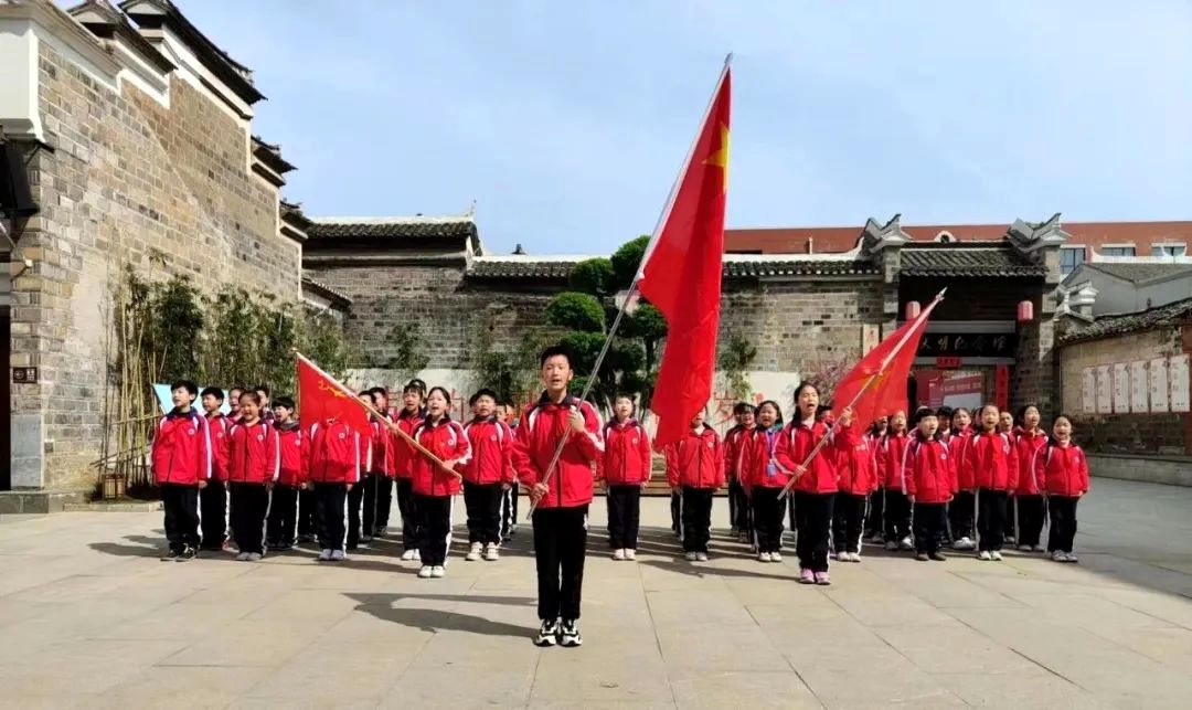 上午9点,在“红马甲”志愿者的陪伴下,参加活动的70余名儿童排列着整齐的队伍,一路高唱着《我们是共产主义接班人》,昂首阔步来到房县红色革命教育基地——雷天明烈士纪念馆。在纪念馆前,少先队员们在老师的带领下,面向队旗庄严握拳,一字一句,铿锵有力地重温中国少年先锋队入队誓词。