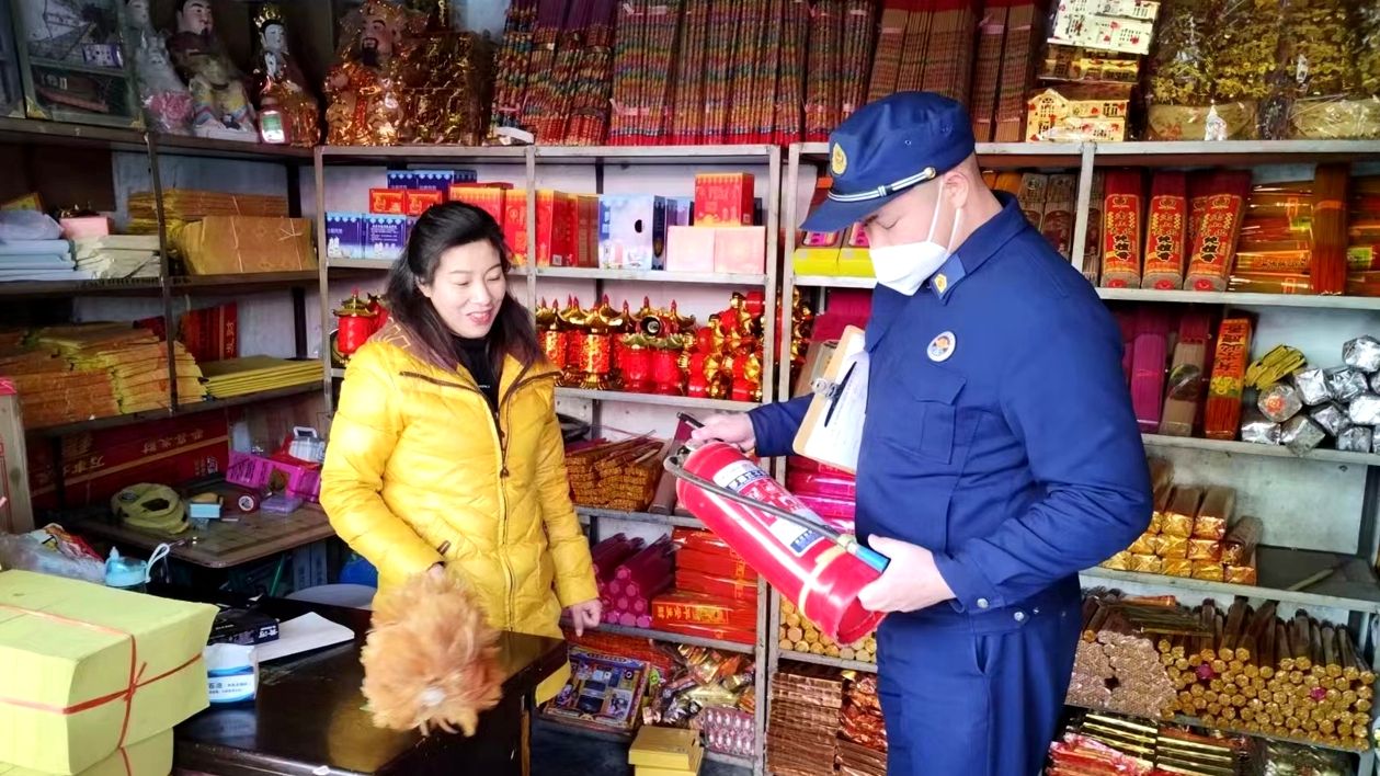 “这些货品不要堆放在疏散通道位置,灭火器要放在明显好取用的地方”,消防人员深入辖区销售祭祀用品沿街门店进行消防安全检查和提示提醒,对场所内安全出口是否通畅、仓库是否存在电线私拉乱接、消防器材配备是否齐全有效等内容进行细致检查。针对检查发现的问题,现场要求负责人立即整改,并提醒负责人,临近清明节人流、物流较大,要加强日常巡查检查、用火用电的管理,切记不可麻痹大意。