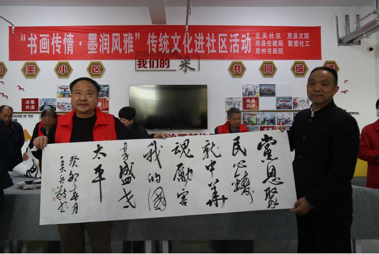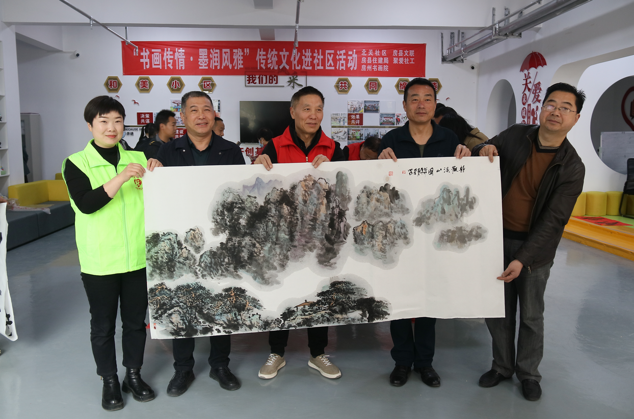 房县新闻网讯 通讯员 张立林 报道:4月8日,由下沉北关社区的房县文联、住建局联合北关社区大党委组织开展的“党建引领 文艺助力”文艺惠民活动在风雅城市广场党建+邻里中心成功举行,新时代文明实践文化文艺分队的书画志愿者现场为群众创作并赠送书画作品,受到群众热烈欢迎。活动得到房州书画院、聚爱社工等社会组织的大力支持。