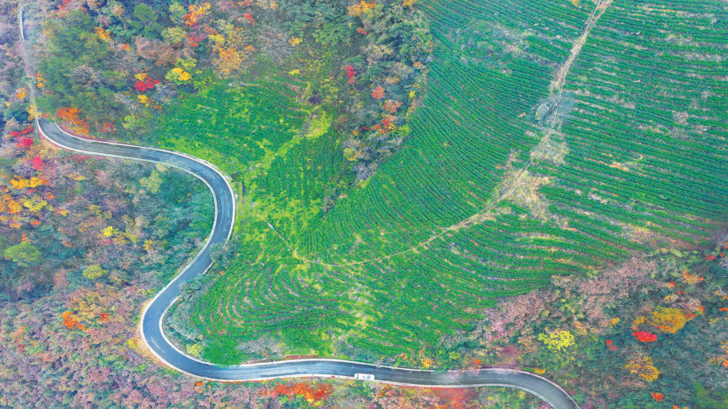 四面环山,风光旖旎。记者沿着姚坪境内蜿蜒的山道行走,星罗棋布的茶园内随处可见采茶人肩挎竹篓,小心翼翼摘尖取叶,空气中氤氲着淡雅的茶香。