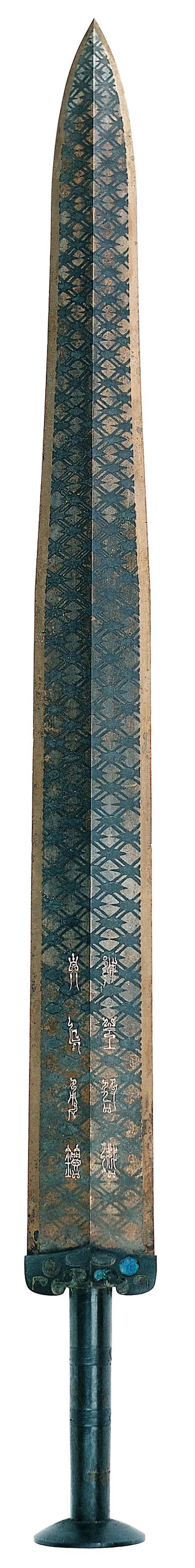 在湖北江陵望山一号墓出土了一把春秋战国的青铜宝剑即使深埋地下数千年当剑从剑鞘中抽出时寒光凌厉,光洁如新在剑的近剑格处写有两行鸟篆铭文“越王鸠浅,自作用剑”经考证,鸠浅是勾践的通假字