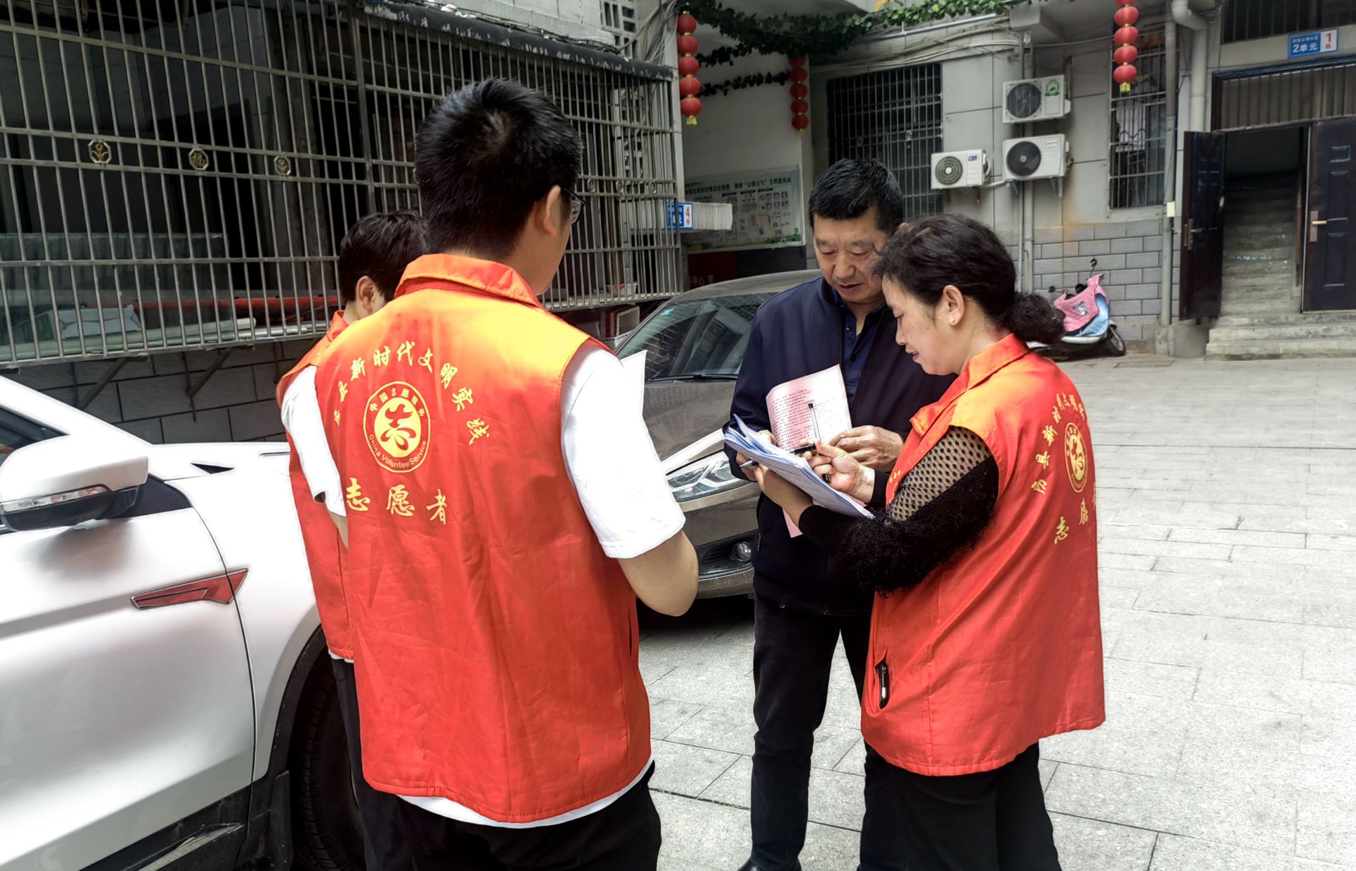 开展“文明宣传进万家”活动。通过“线上+线下”模式在包联小区积极开展“文明宣传”活动。在小区微信群积极宣传绿色生活、低碳出行、防电信诈骗、文明创建等相关知识,扩大创文宣传影响力;“线下”组织干部职工走访入户,通过发放调查问卷,签订“门前三包”责任书,与居民面对面进行交流等方式进行宣传。