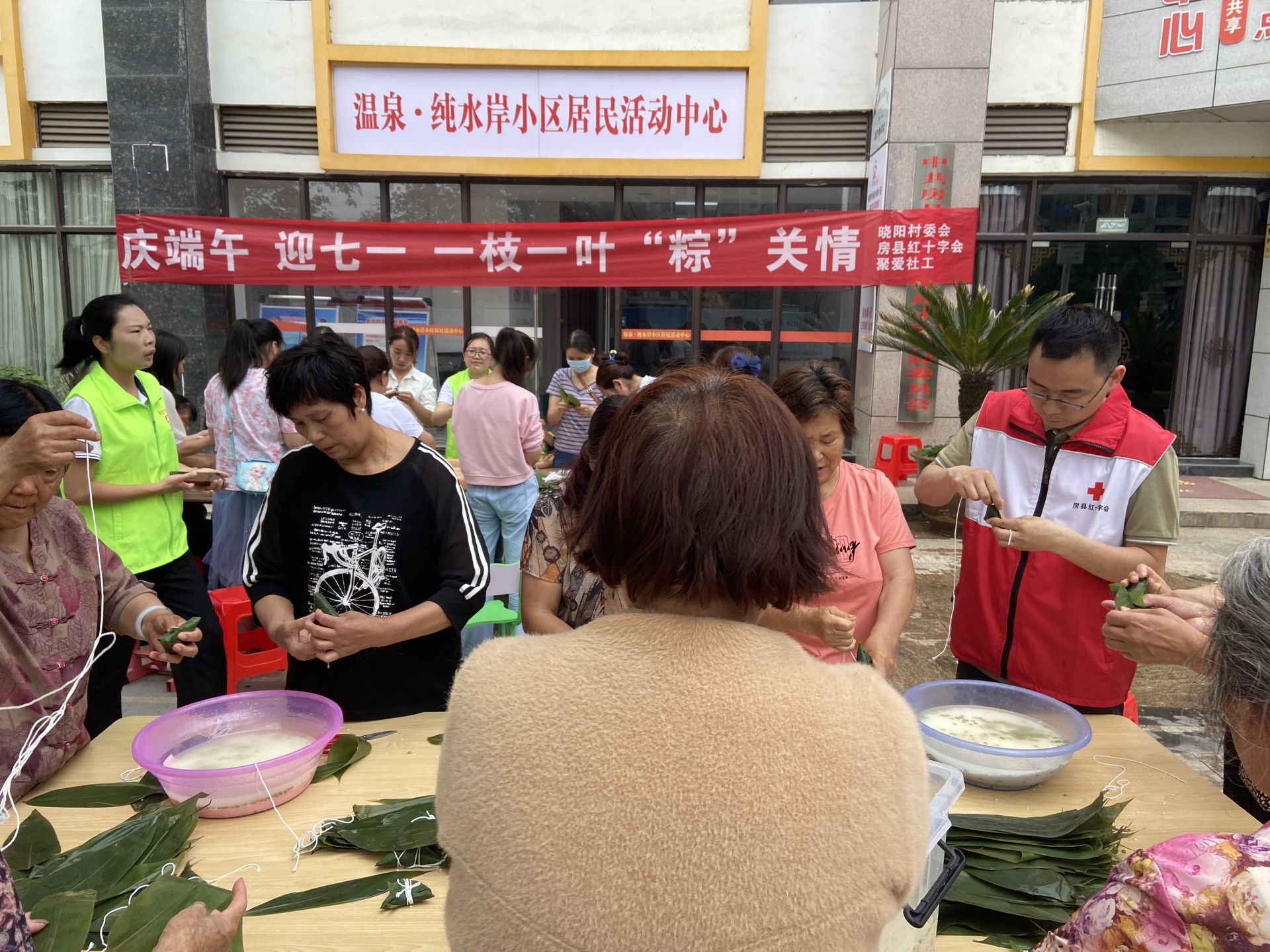 房县新闻网讯 通讯员 陈忠海 报道:为弘扬中华民族传统文化,倡导人道、博爱、奉献的红十字精神,进一步丰富社区居民文化生活,让广大居民深切地感受到传统节日的独特魅力,6月21日,房县红十字会联合聚爱社工走进纯水岸小区开展了“庆端午 迎七一 一枝一叶'粽'关情”活动。