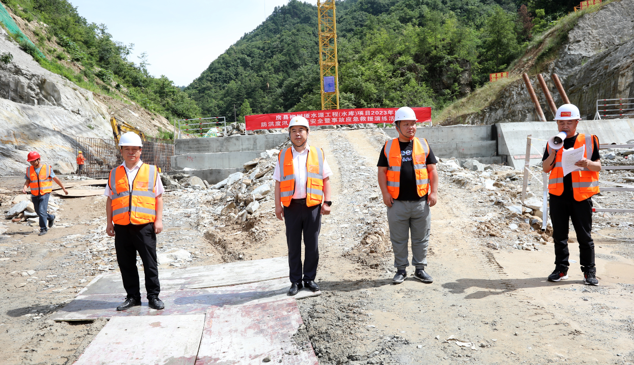 为了夯实在建柳树垭水库防汛安全,房县柳树垭水源工程(水库)建设项目指挥部模拟当地突降暴雨,水库洪水暴涨,在建水利工程出现重大险情,危及施工人员和工程沿线群众生命财产安全。.