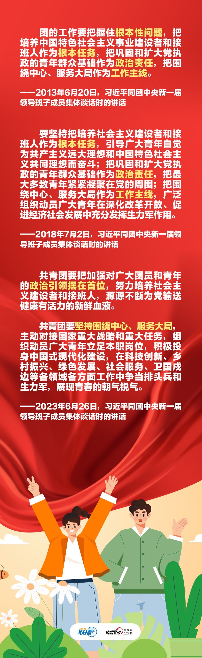 2013年、2018年、2023年,党的十八大以来,总书记同团中央领导班子成员有过三次集体谈话。三次谈话,总书记分别强调了什么?央视网《联播+》特作梳理分析,与您一起学习。